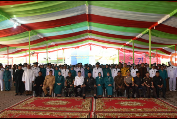 Sergai, POL | Bupati Serdang Bedagai Ir H Soekirman melantik 120 Kepala Desa se-Kabupaten Sergai di Halaman Kantor Bupati Sergai, Kecamatan Sei Rampah, Selasa pekan lalu. Turut hadir, Wabup Sergai H Darma Wijaya, unsur Forkopimda, Sekdakab Sergai H M Faisal Hasrimy, Ketua TP PKK Ny Hj Marliah Soekirman, Ketua GOPTKI Ny Hj Rosmaida Darma Wijaya, Ketua DWP Ny Uke Retno Wahyuni Faisal Hasrimy, para Asisten, Staf Ahli Bupati, Kepala OPD, Camat, PKK Desa serta undangan lainnya.