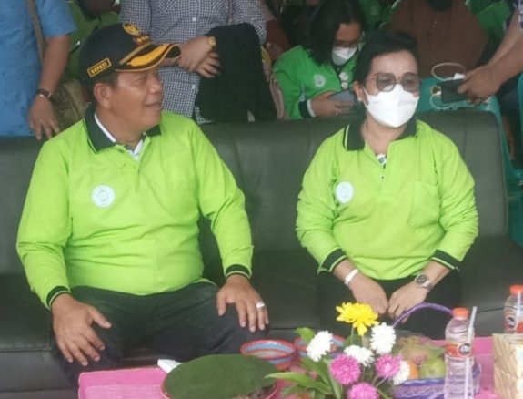 Pada reuni akbar dihadiri ratusan alumnus SMKN 1 itu, Bupati Radiapoh didampingi isteri tampak duduk bersama usai menerima makanan adat tradisi Simalungun (dayokbinatur).