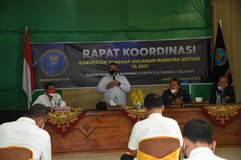 “Mari kita bersama satukan tekad terus memberantas narkoba dan budayakan hidup sehat dan sadar tanpa narkoba,” ungkap Bupati Tapsel selaku narasumber pada rapat koordinasi (Rakor) kabupaten tanggap ancaman narkoba (KOTAN) tahun 2021 oleh Badan Narkotika Nasional Kabupaten (BNNK) Tapanuli Selatan di “Parsorminan Park dan Farm” Desa Parsorminan, Kecamatan Sipirok, Kabupaten Tapsel, Rabu (18/8/2021).
