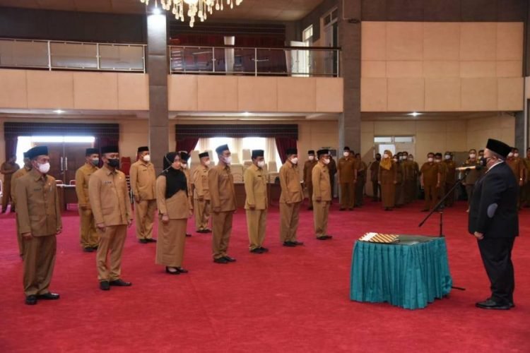 Tapsel, POL | Bupati Tapanuli Selatan (Tapsel), H Dolly Pasaribu, SPt, MM, melantik dan mengambil sumpah jabatan terhadap 21 pejabat pimpinan tinggi pratama di Gedung Serba Guna Sarasi, Jalan Prof. Lafran Pane, Sipirok, Selasa (29/3/2022).
