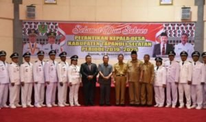 Tapsel, POL | Bupati Tapanuli Selatan (Tapsel) H Syahrul M Pasaribu, SH melantik 38 Kepala Desa (Kades) terpilih periode 2019 – 2025 di Gedung Serbaguna Sarasi II, Perkantoran Pemkab Tapsel, Jalan Prof. Lafran Pane, Sipirok, Senin (2/12/2019).