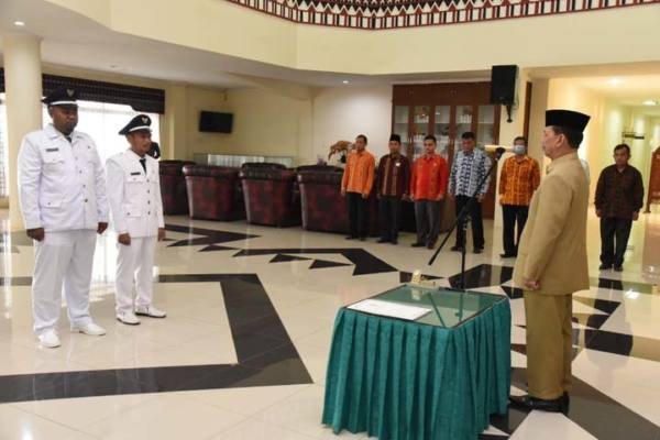 Tapsel, POL | Bupati Tapanuli Selatan (Tapsel) H. Syahrul M Pasaribu, SH melantik dua Kepala Desa Antar Waktu, yakni Kepala Desa Tanjung Dolok Kecamatan Marancar dan Kepala Desa Aek Nauli Kecamatan Batang Angkola di Kantor Bupati Tapsel, Jalan Prof. Lafran Pane, Sipirok, Kamis (12/12/2019).