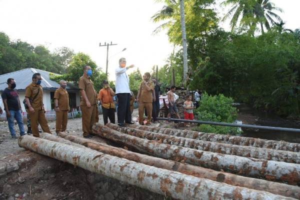 Tapsel, POL | Bupati Tapanuli Selatan (Tapsel) H. Syahrul M. Pasaribu, SH meninjau jembatan yang ambruk di Desa Batu Godang, Kecamatan Angkola Sangkunur, Senin (8/6/2020).