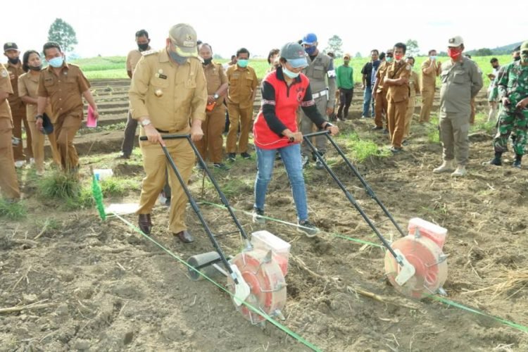 Atas kesungguhan kelompok tani tersebut, Bupati Nikson didampingi pimpinan OPD terkait turun langsung ke lokasi pertanian masyarakat seluas 27 hektar, Senin (21/09/2020).