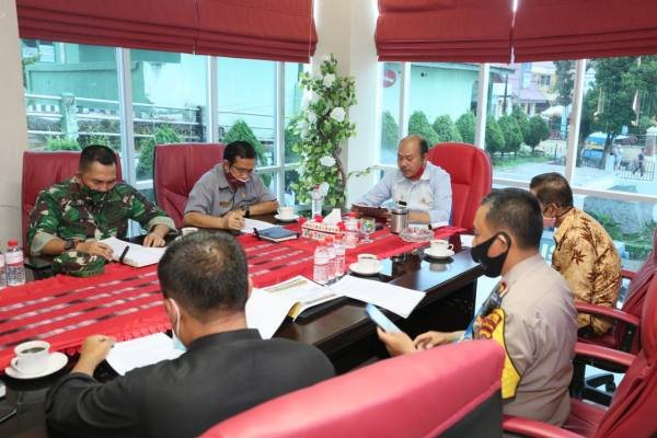 Tarutung, POL | Rapat Kordinasi (Rakor) bersama Forum Koordinasi Pimpinan Daerah (Forkopimda) Taput berlangsung di Kantor Bupati, Jumat (29/05/2020).