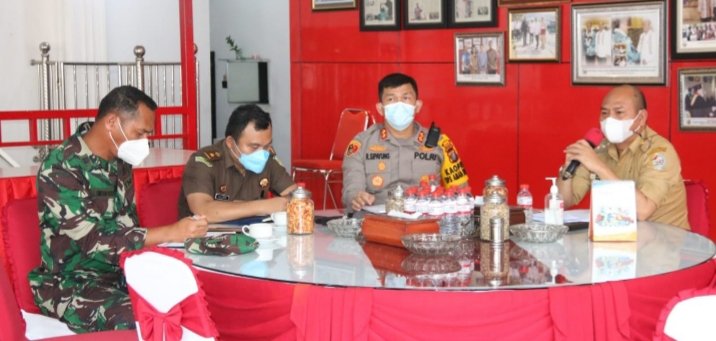 Tarutung, POL | Bupati Tapanuli Utara Drs. Nikson Nababan MSi memimpin rapat bersama Forum Komunikasi Pimpinan Daerah (Forkopimda) Tapanuli Utara membahas pemberlakuan pembatasan kegiatan masyarakat (PPKM).
