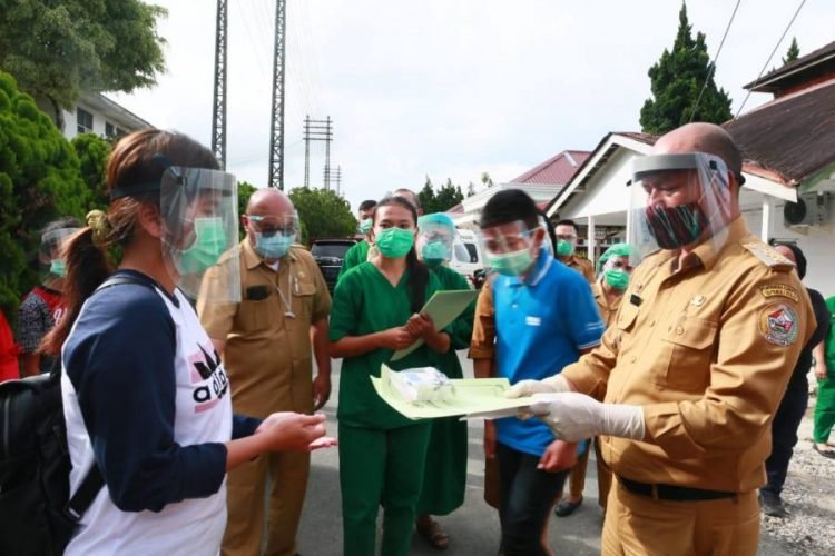 Tarutung, POL | Bupati Taput  Drs. Nikson Nababan, MSi didampingi Direktur RSUD Tarutung dr. Janri Nababan ,Senin (14/09-2020) kembali melepas pasien sembuh yang terkonfirmasi Covid-19 yang dirawat di ruang isolasi RSUD Tarutung.