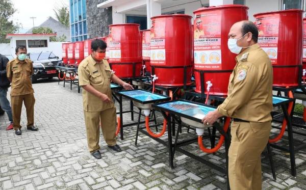 Hal tersebut disampaikan Nikson Nababan saat membagikan washtafel portabel ke seluruh Desa dan Kelurahan .  Pembagian washtafel itu diserahkan melalui para Camat di kantor Bupati, Tarutung, Selasa (14/04/2020).