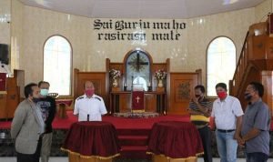Bupati Nikson dan Forkopimda diterima oleh Pdt. Saor Hutagaol, STh selaku Pendeta Resort bersama para Pengurus Gereja menganjurkan agar pihak gereja harus menyepakati beberapa ketentuan dalam pelaksanaan tata cara beribadah yang berpedoman pada protokoler kesehatan Covid-19.