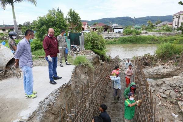 Tarutung, POL | Bupati Taput Nikson Nababan meninjau tujuh Posko di Kelurahan di Kecamatan Tarutung. Selain Posko, juga Nikson meninjau pekerjaan gorong gorong di pinggiran tanggul Aek Sigeaon Tarutung, Jumat (08/05/2020).