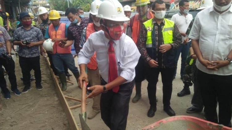 Toba, POL | Bupati Toba Darwin Siagian beserta Rombongan yang di dampingi Camat Porsea dan Lurah Pasar Porsea melakukan kegiatan peletakan batu pertama program Kota Tanpa Kumuh,Jumat (14/8/2020).