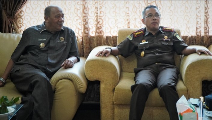 Langkat, POL | Pelaksana Tugas (Plt) Bupati Langkat H Syah Afandin SH menerima kunjungan silahturahmi Kepala Kejaksaan Negeri (Kajari) Langkat M Abeto Harahap SH MH, di Kantor Bupati Langkat, Stabat, Senin (28/3/2022).