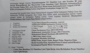 Padanglawas, POL | Tuntut cabut dan batalkan Undang-undang (UU) Omnibus Law Cipta Kerja dan stop kriminalisasi terhadap aktifis buruh, aksi demo buruh/pekerja tergabung di Federasi Serikat Pekerja Metal Indonesia (FSPMI) akan mewarnai Sibuhuan Ibukota Kabupaten Padanglawas (Palas), Provinsi Sumatera Utara atau Sumut, Senin (02/11/2020) mendatang.