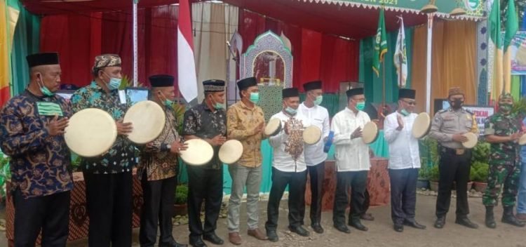 Asahan, POL | Camat Aek Kuasan, Tri Harja dan Forkompincam Kecamatan Aek Kuasan menabuh rabana tanda dibukanya Musabaqoh Tilawatil Qur’an (MTQ) dan Festival Nasyid (FN) Tingkat Kecamatan Aek Kuasan Tahun 2021.