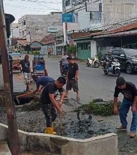 Walaupun di hari libur, Camat Turing Ritonga tetap ikut serta dalam bergotong royong membantu warga di kelurahan cendana untuk membersihkan selokan yang tersumbat akibat sampah plastik.