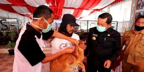 “Hewan peliharaan yang sudah selesai disuntik dikasih kalung merah sebagai pertanda sudah divaksin rabies,” tutur Victor.