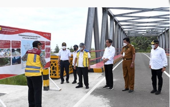 Nias Barat, POL |  Usai meninjau pembangunan infrastruktur di Nias Utara, Presiden Joko Widodo didampingi Gubernur Sumatera Utara (Sumut) Edy Rahmayadi juga meninjau pembangunan Jalan Lingkar Nias Barat dan Jembatan Idano Sibolou di Nias Barat, Rabu (6/7/2022). Pembangunan infrastruktur tersebut diharapkan dapat meningkatkan kesejahteraan masyarakat dan menekan angka kemiskinan, khususnya di Nias Barat.