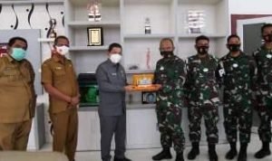 Labuhanbatu, POL l Komandan Pangkalan TNI Angkatan Laut (Danlanal) Tanjung Balai Asahan Letkol laut (P) Dafris Msc.Ms Suan dan silaturahmi ke kantor Bupati Labuhanbatu yang disambut langsung oleh Pejabat sementara (Pjs) Bupati Labuhanbatu Drs.H.Mhd Fitryus SH.MSP, Senin (12/10/2020).