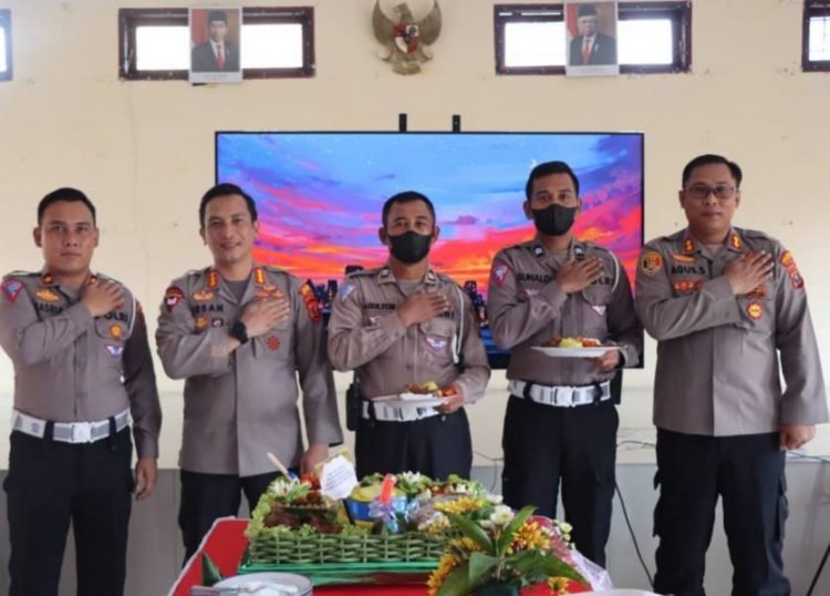 “Hari ini kita melaksanakan Syukuran dalam rangka Hari Lalu Lintas Bhayangkara ke 67, yang jatuh pada hari ini, tanggal 22 September 2022, walaupun Syukurannya kita laksanakan secara sederhana namun tidak mengurangi khidmatnya acara ini, pesan saya berilah Sopan santun beretika dalam menghadapi masyarakat .berdiri tegak lah di tengah panas dan hujan tak penting meminta untuk dipuja, ikhlas lakukan tugas sebagai ladang ibadah, tetap jalin sinergitas dengan instansi lainnya .lakukan komunikasi , koordinasi dan kolaborasi dan Selamat Hari Lalu lintas Bhayangkara ke 67 kegiatan ini tidak perlu kita lakukan dengan eforia cukup dengan kesederhanaan dan doa yang kita harapkan hanyalah ridho dari Allah, ungkapnya