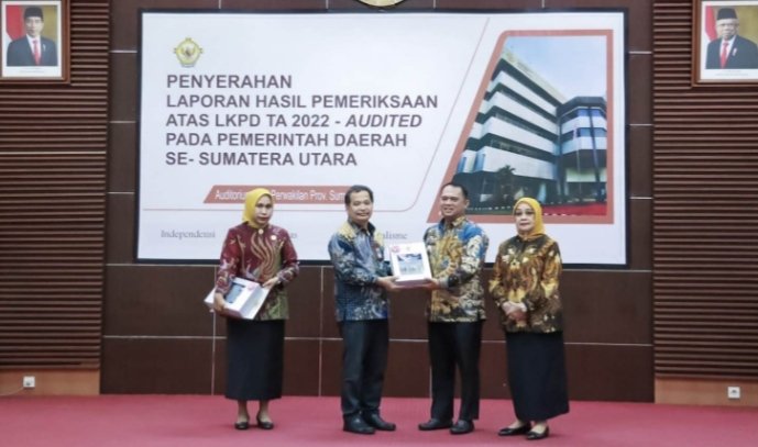Labuhanbatu, POL | Pemerintah Kabupaten (Pemkab) Labuhanbatu menerima predikat opini Wajar Tanpa Pengecualian (WTP) dari Badan Pemeriksa Keuangan RI perwakilan Sumatera Utara atas Laporan Keuangan Pemerintah Daerah (LKPD) Kabupaten Labuhanbatu Tahun Anggaran 2022.