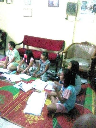 Kelihatan dalam foto, pelajar SD N Rayahuluan, Kecamatan Dolokmasagal Kabupaten Simalungun oleh gurunya diajak bersekolah dan belajar di rumah penduduk.