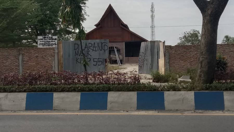 Di lokasi pembangunan gedung mewah tersebut hanya ada plang bertuliskan “Tanah ini milik Lamhot A.A.P Tampubolon SHM No.321 BPN Deli Serdang, Luas 4.102 M. Dilarang masuk pasal 551 KUHAP, Bagi Penghuni Liar Segera Keluar Dari Atas Tanah Ini !!! “.