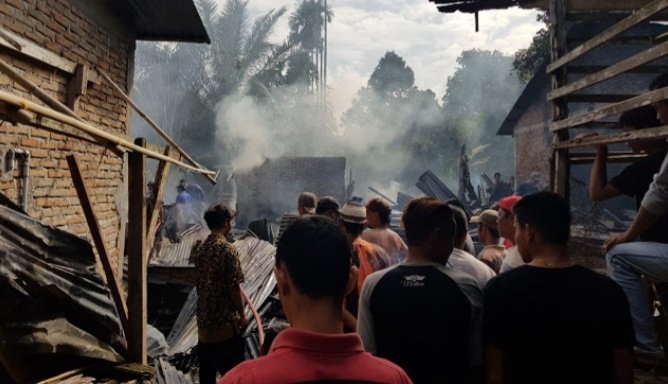 Diketahui dua rumah terbakar itu milik Tambar Purba (65) dan Satu Rumah milik Mentasi Bukit (52) keduanya warga Dusun II Desa Tangkahan Kecamatan Namo Rambe.