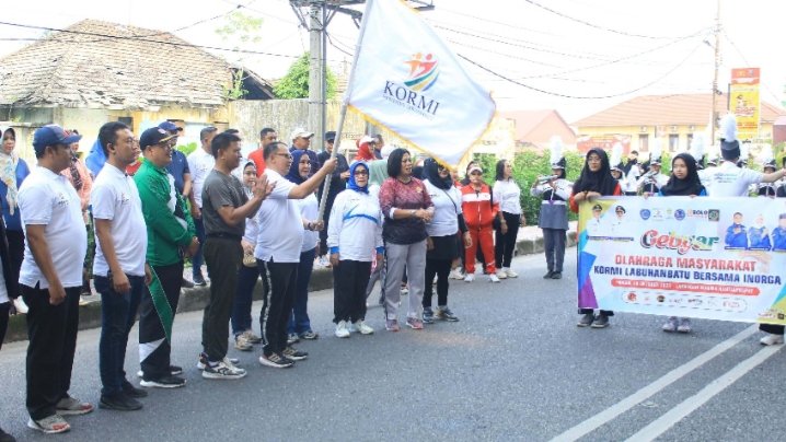 Labuhanbatu, POL | Bupati Labuhanbatu dr. H. Erik Adtrada Ritonga, MKM., menghadiri Gebyar Olahraga Masyarakat Labuhanbatu yang diselenggarakan oleh Komite Olahraga Rekreasi Masyarakat Indonesia (KORMI) Kabupaten Labuhanbatu di Lapangan Ika Bina Rantauprapat, Minggu (08/10/2023).