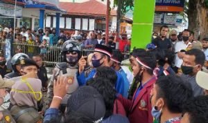 Padangsidimpuan, POL | Ratusan mahasiswa dari berbagai peguruan yang ada di kota Padangsidimpuan turun kejalan dan berunjuk rasa di depan Gedung DPRD Padangsidimpuan (8/10/2020), menolak pengesahan UU Cipta Tenaga Kerja yang dusahkan DPR-RI.