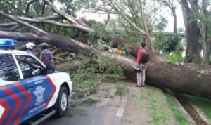 Angin kencang yang diiringi dengan hujan deras mengakibatkan tiang listrik dan pohon tumbang ke badan jalan sehingga aliran listrik di 4 Desa di Kecamatan Bandar Pulau terputus.