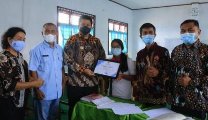 Atas prestasinya, Bupati Samosir Vandiko Timotius Gultom ST bersama Plt Kadis Pendidikan dan sejumlah staf berkunjung ke SMPN Negeri 2 Pangururan, Jumat, 5 November 2021.