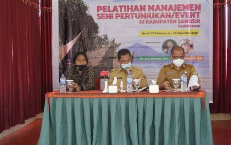 Samosir, POL | Guna meningkatkan kualitas Sumber Daya Manusia (SDM) dalam melaksanakan dan mengelola pertunjukan/even, Dinas Pariwisata Kabupaten Samosir menggelar pelatihan managemen seni pertunjukan/event, di Hotel JTS Parbaba, Desa Siopat Sosor, Kecamatan Pangururan, Selasa-Jumat (24-27 November 2020).