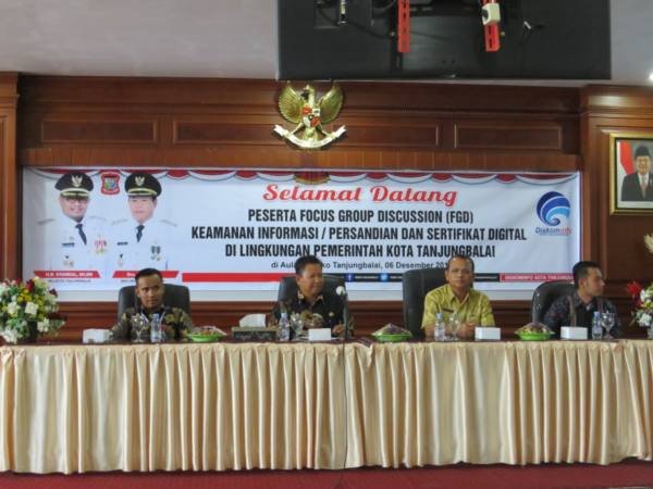 Tanjungbalai, POL | Dinas Komunikasi dan Informatika (Diskominfo) Kota Tanjungbalai menggelar acara Focus Group Discussion (FGD) Keamanan informasi/Persandian dan Sertifikat Digital bagi Para OPD dilingkungan Pemko Tanjungbalai berjumlah 80 orang. Acara yang dibuka oleh Wakil Wali Kota Drs.H Ismail berlansung di Aula II Kantor Wali Kota, Kamis, (6/12/2018).