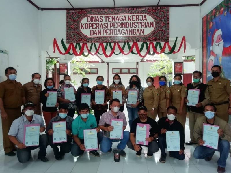 Samosir, POL | Berkat pro aktif Disnaker Koperindag melalui Kabid Koperasi dan UMKM Kabupaten Samosir, akhirnya 32 Sertifikat Produksi Pangan-Industri Rumah Tangga (SPP-IRT) bagi 15 pelaku UMKM diterbitkan.