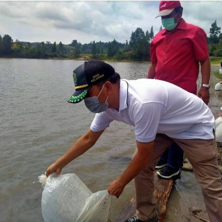 Samosir, POL | Guna melestarikan populasi ikan di sejumlah pea (perairan daratan), Pemerintah Kabupaten Samosir bersama DPRD melakukan restocking benih ikan nila sebanyak 40 ribu ekor di tujuh pea yang tersebar di 4 kecamatan, Sabtu, 30 Mei 2020.