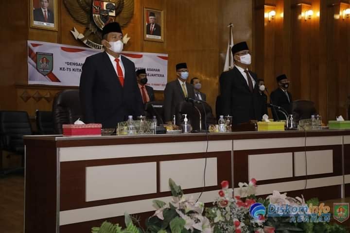 Ketua DPRD Kabupaten Asahan H. Baharuddin Harahap, SH, MH dalam kekesempatan itu menyampaikan bahwa perayaan Hari Jadi Ke-75 Kabupaten Asahan merupakan momen refleksi dan evaluasi bersama atas perjalanan Pemerintah Kabupaten Asahan 75 tahun lalu hingga saat ini.