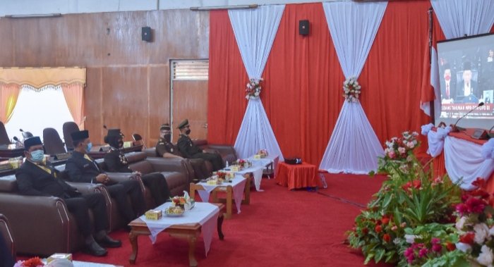 Padangsidimpuan, POL | DPRD Kota Padangsidimpuan menggelar Rapat Paripurna mendengankan pidato kenegaraan HUT.RI ke-76 Tahun 2021di gedung paripurna DPRD Padangsidimpuan (16/8/2021), dipimpin langsung Ketua DPRD Kota Padangsidimpuan Siwan Siswanto.