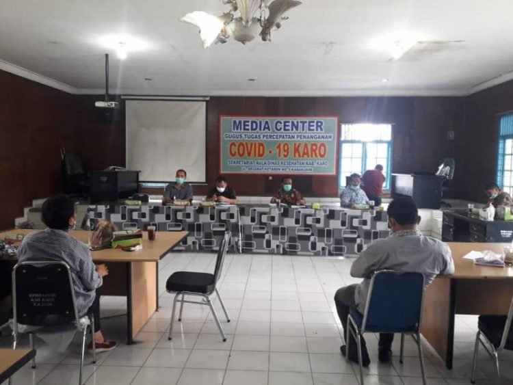 Konsultasi diterima oleh Sekretaris Dinas Kesehatan Kabupaten Karo, Nikodemus Ginting, SKM bersama sejumlah staf di Kantor dinas setempat, Kabanjahe, Kamis (14/1/2021)..