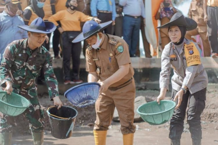Padangsidimpuan, POL | Walikota Padangsidimpuan Irsan efendi Nasution SH bersama jajaran Forkopimda panen ikan lele yang diinisiasi Polres Padangsidimpuan di Desa Baruas, Kecamatan Padangsidimpuan Batunadua, Kota Padangsidimpuan, Selasa (18/8/2020)..