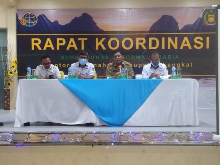 Stabat, POL | Badan Pertanahan Nasional (BPN) Kabupaten Langkat bersama Pemkab Langkat menggelar rapat koordinasi Gugus Tugas Reforma Agraria (GTRA) Kantor Pertanahan Kabupaten Langkat tahun 2020, bertempat di Resto Stabat Seafood, Selasa (24/11/2020).