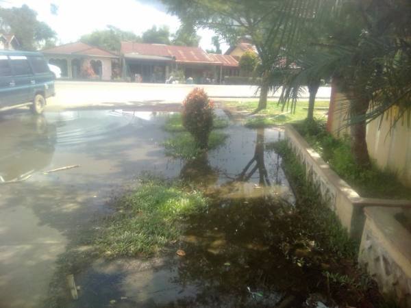 Pamatangraya, POL | Di depan SMP N1 Raya, Kecamatan Raya, Kabupaten Simalungun selalu digenangi air akibat pembiaran pihak sekolah.