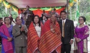 Usai acara ramah tamah, Ketua DPRD Samosir bersama Bupati Samosir diulosi oleh pengurus gereja HKBP Siallagan.(SBS)