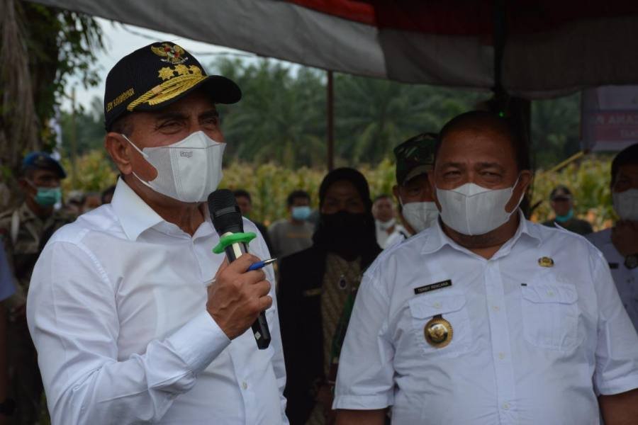 Langkat, POL | Gubernur Sumatera Utara, H. Edy Rahmayadi berencana jagung hasil pertanian dari Langkat diregulasikan sebagai bahan pakan ternak yang ditangani/dikelola BUMD, untuk menjaga kesetabilan harga pangan, khususnya Komoditas Jagung di Sumut.