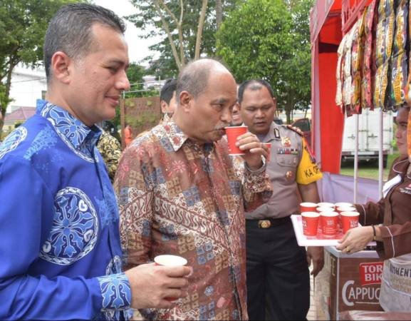 Tebingtinggi, POL | Gubernur Sumatera Utara diwakili Wakil Gubernur Sumatera Utara H. Musa Rajekshah bersama Walikota Tebing Tinggi Ir. H. Umar Zunaidi Hasibuan, MM membuka resmi pos simpul koordinasi dalam rangka festival kopi dan kuliner nusantara (halal food) Kota Tebingtinggi, Sabtu (8/12/2018)di Lapangan Sri Mersing Tebingtinggi.