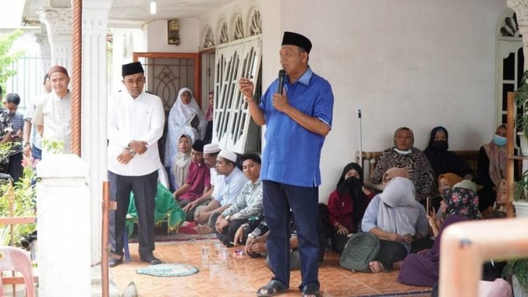 Pelaksana Tugas (Plt) Bupati Langkat, H Syah Afandin SH bersama rombongan Kepala Perangkat Daerah bertakziah kerumah duka di Kelurahan Batang Serangan, Kecamatan Batang Serangan, Kabupaten Langkat, Jum’at (23/9/2022).
