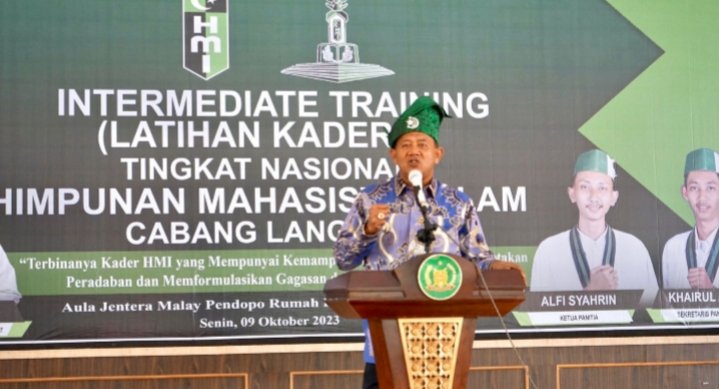 Langkat, POL | Plt Bupati Langkat H.Syah Afandin SH menghadiri Intermediate Training (Latihan Kader ll) Tingkat Nasional Himpunan Mahasiswa Islam (HMI) Cabang Langkat, bertempat di Jentera Malay Rumah Dinas Bupati Langkat, Senin (9/10/2023).