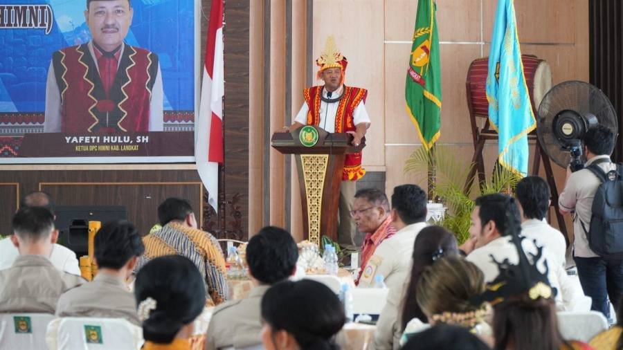 Plt Bupati Langkat H. Syah Afandin, SH menyampaikan rasa syukur pada Tuhan Yang Maha Kuasa hari ini dibawah kepemimpinannya sebagai Pelaksana Tugas Bupati Langkat bisa berhimpun disini bersama masyarakat Nias yang ada di kabupaten Langkat.