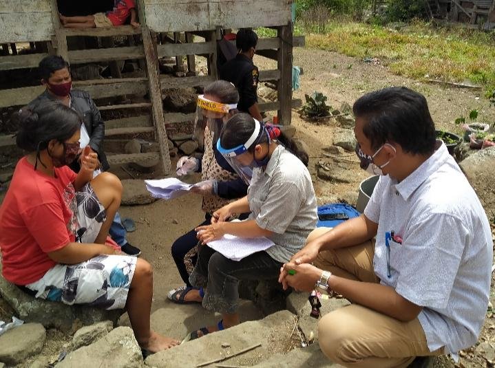 Komisioner KPU Kabupaten Samosir melakukan monitoring terhadap kegiatan verifikasi faktual (verfak) berkas dukungan Bakal Calon (Bacalon) jalur perseorangan pada Pilkada Samosir, Jumat, 3 Juli 2020 di Kecamatan Sianjur Mulamula.