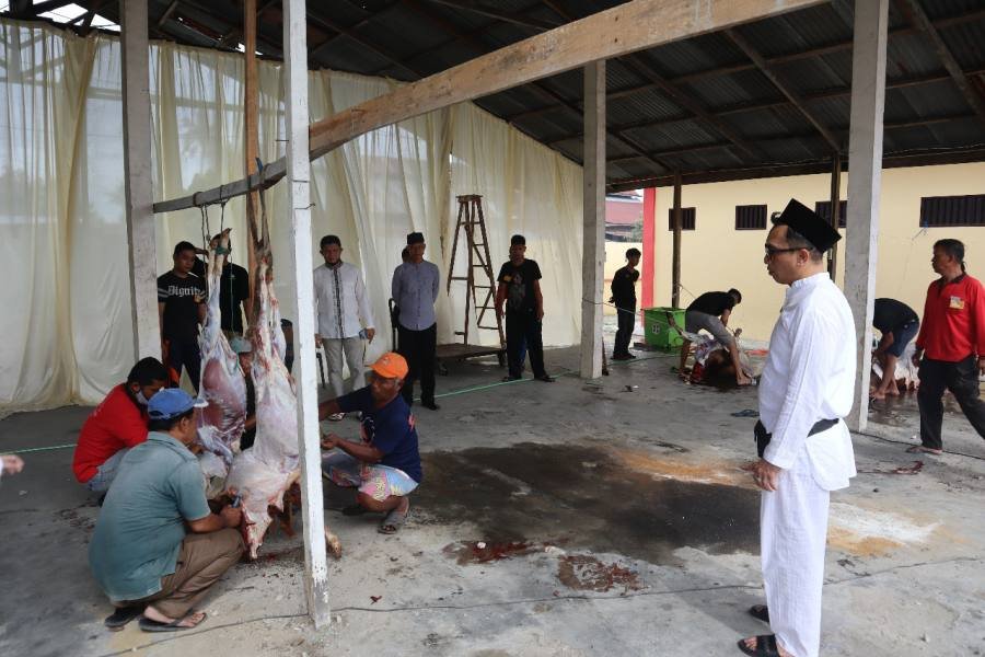 Hari Raya Idul Adha 1443 H Polresta Deli Serdang Sembelih 14 Lembu dan 17  Kambing