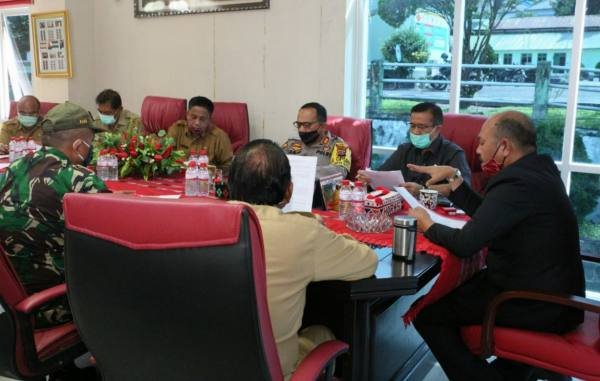 Tarutung, POL | Forum Koordinasi Pimpinanan Daerah (Forkopimda) Taput yang dihadiri antara lain Bupati Nikson Nababan, Ketua DPRD Poltak Pakpahan, Kapolres Horas Marasi Silaen, Wakil Bupati Sarlandy Hutabarat, SE, Kasdim 0210/TU Ojak Simarmata menetapkan masa perpanjangan masa Tanggap Darurat hingga 30 Mei 2020.